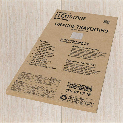 Wholesale: DECKO Flexistone Wall Panels - Box of 6: GRANDE TRAVERTINO panels (1200x600mm) - FOB Shenzen. MOQ 1 Pallet = 72 boxes (Price/Box)