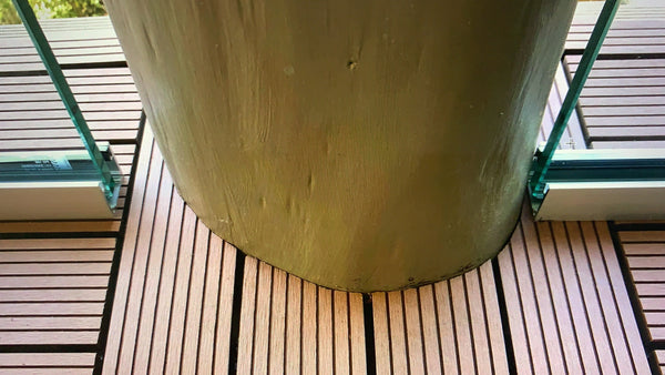 Nicely cut brown tile around timber post