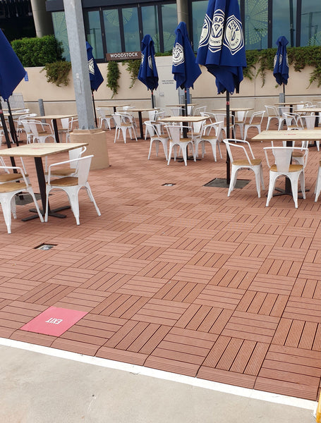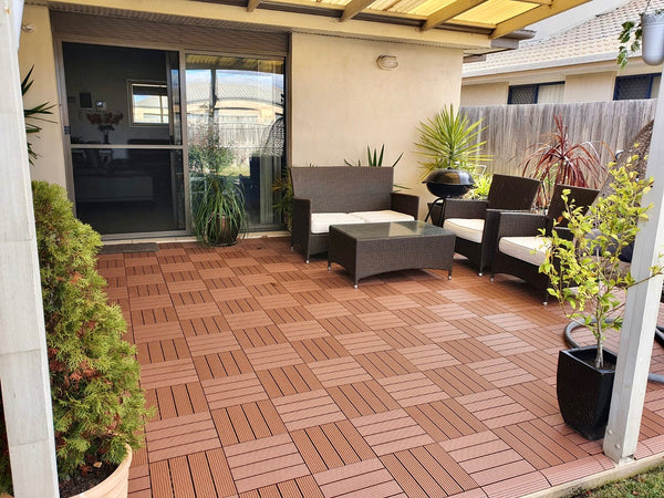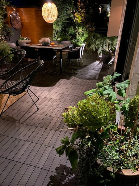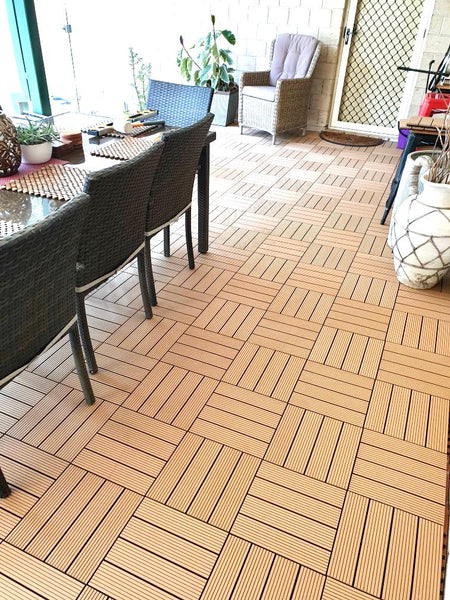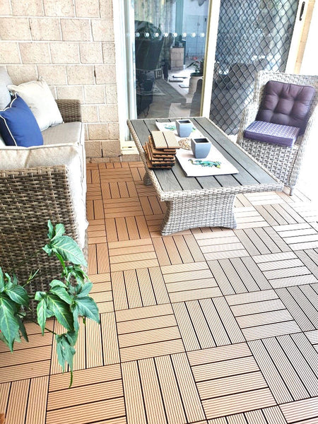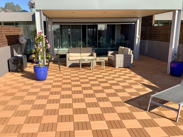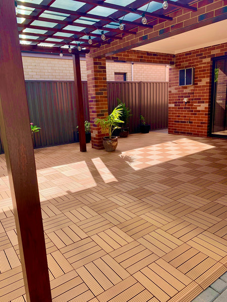 Teak tiles, brighten outdoor areas