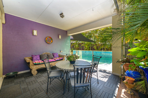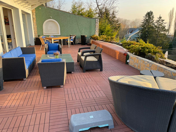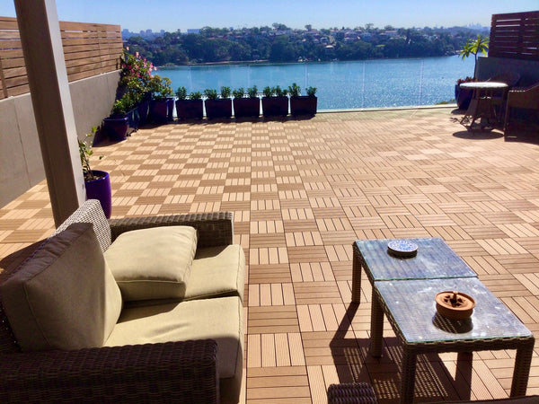 Teak tiles on a stylish veranda