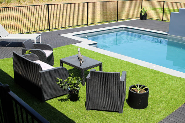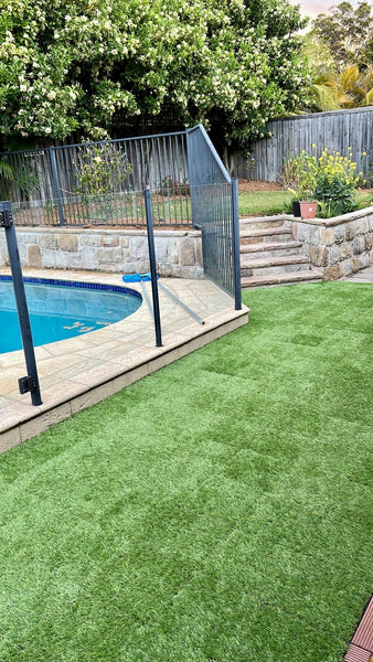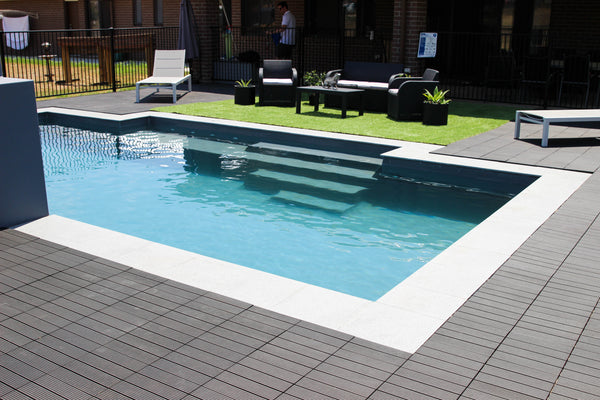 Grass and Charcoal tiles next to a pool