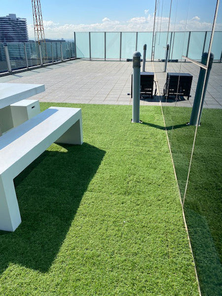 Grass tiles being laid on a Highrise in Melbourne CBD