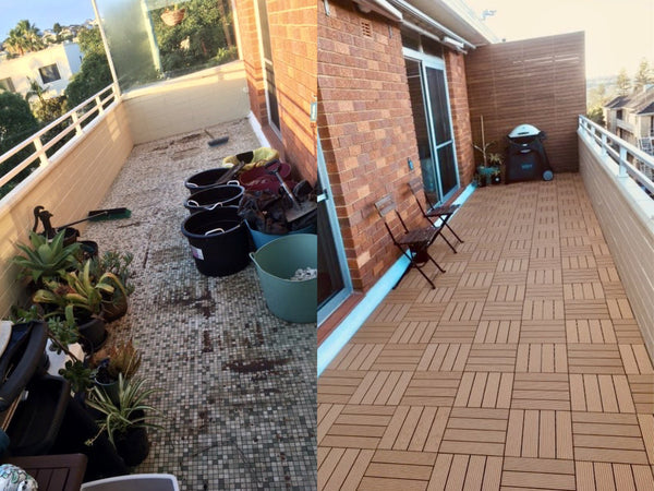 Before and after Teak DECKO Tiles